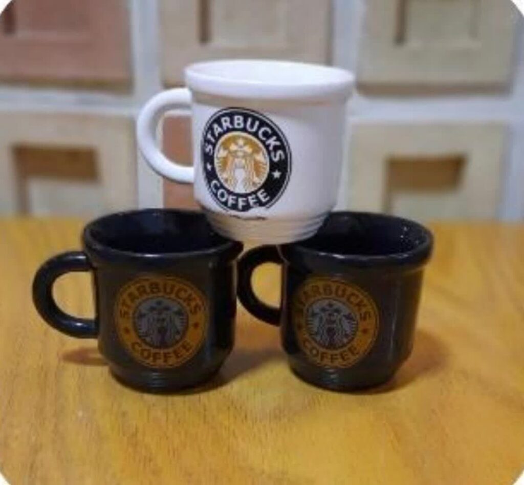 فنجان اسپرسو سفید لبه مشکی طرح دار1978