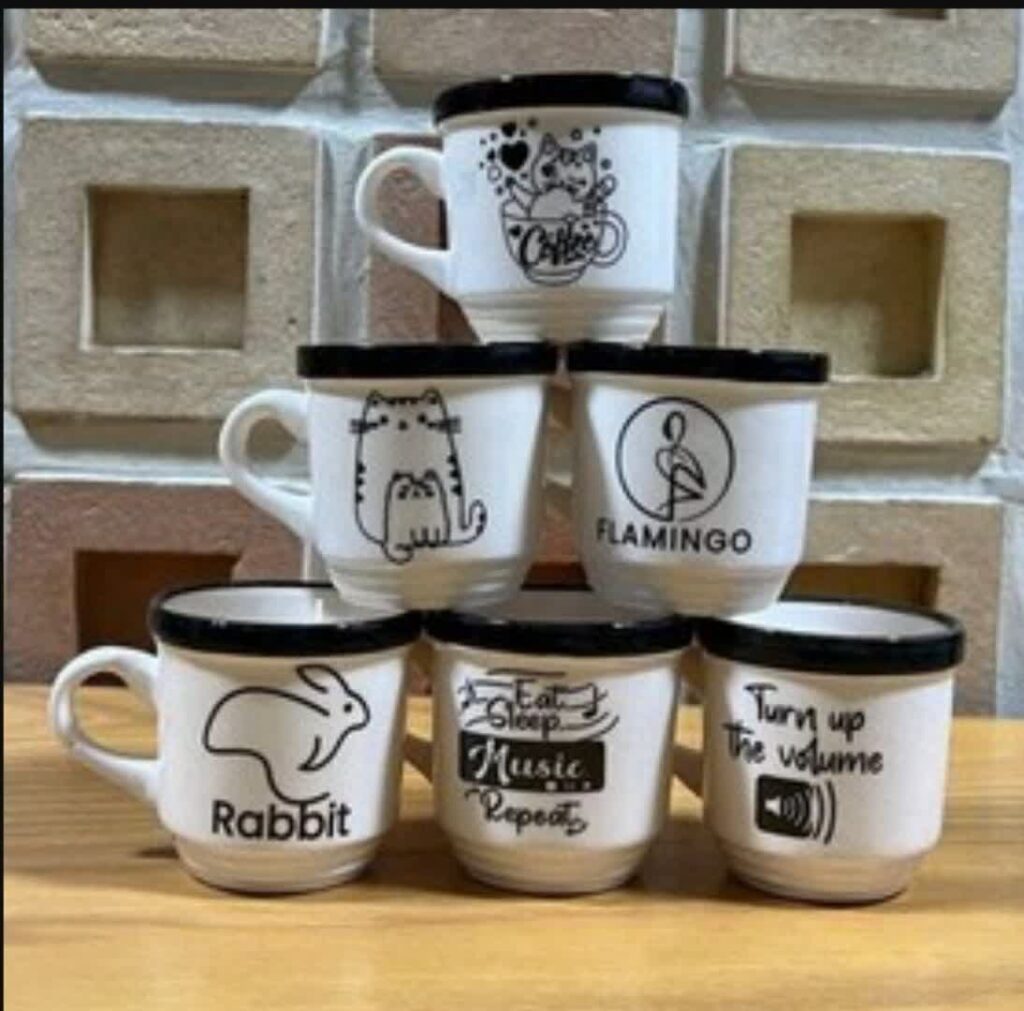 قهوه خوری سفید لبه مشکی طرحدار کد 2212