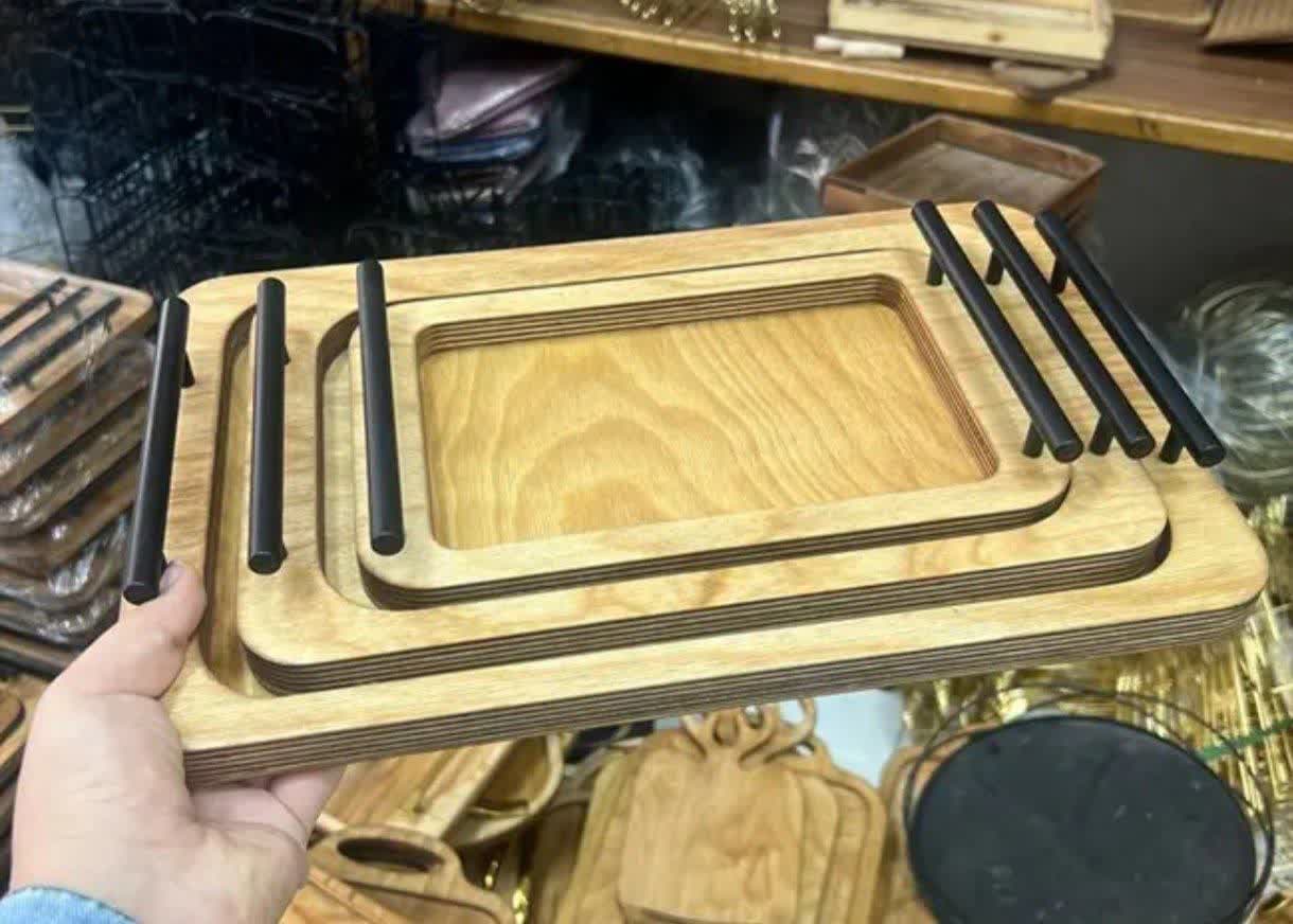 سینی 3تیکه مستطیل چوبی دسته فلزی کد2544